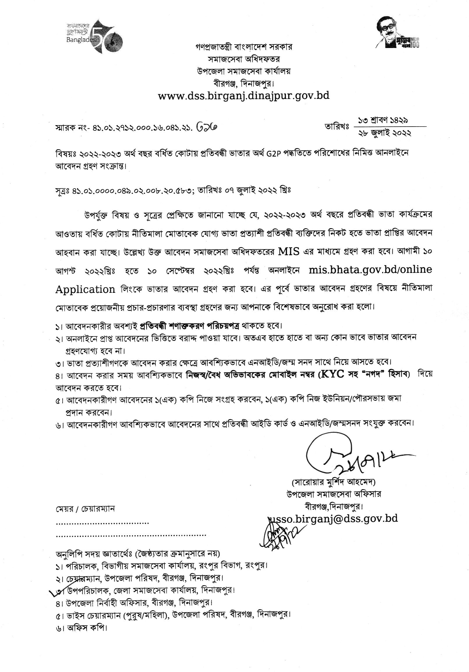 | ৩ | প্রতিবন্ধী ভাতার অনলাইন আবেদন প্রসংগে | | ০১-০৮-২০২২ | দেখুন | |